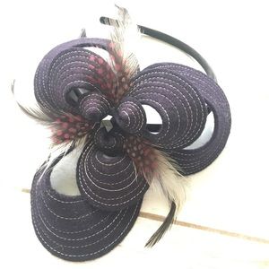 Picturing the gorgeous deep purple, black, white, and pink polka dot feather fascinator headband. Very light and comfortable but never been worn--NWOT. Handmade by a local artist. Smoke-free home. Grab the beautiful and unique felt and feather fascinator headband now!