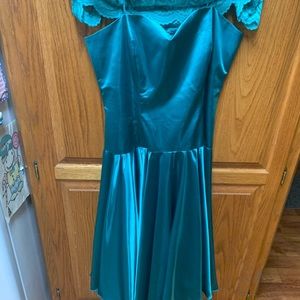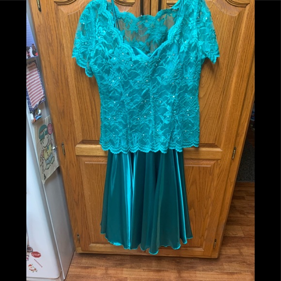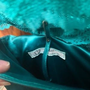 Please read measurements this is a handmade dress vintage by Mai out of ya zoo city ms it has a dress where straps can be adjusted and and zippered back with a lace short sleeve over with zipper on some worn some and bloomers to go underneath. Measurements are 16 inches across chest, 35 inches long from top of zipper down