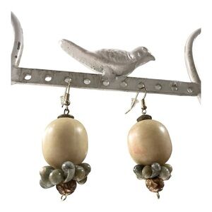 Beautiful green cream and bronze drop earrings with shells