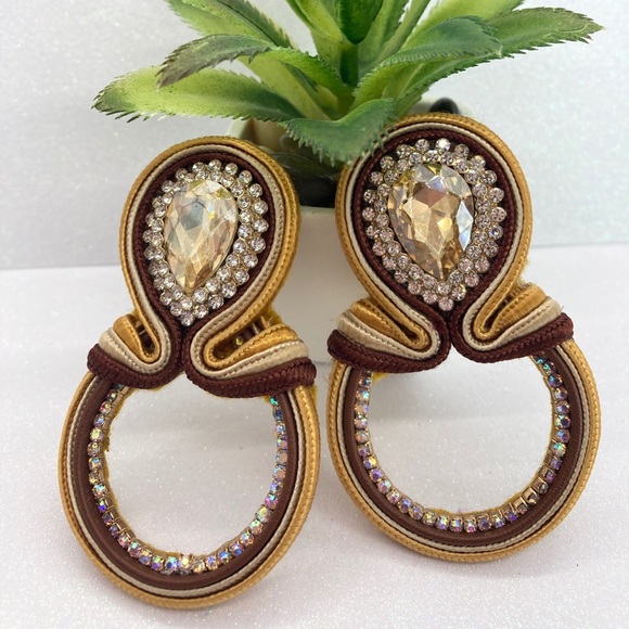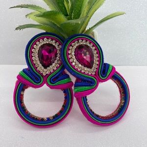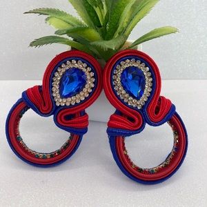 Handmade fashion earrings fabric & crystals ideal for holidays different colors to choose from