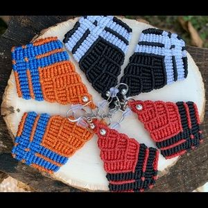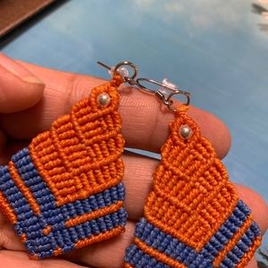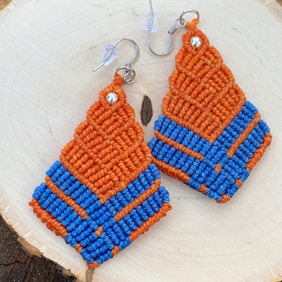 Kite shape earrings made out of Brazilian wax thread each pair has two colors.