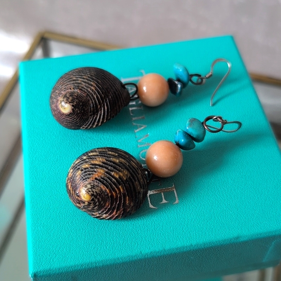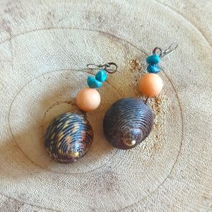 Natural shells, rose quartz and turquoise One of a kind earrings