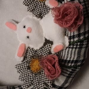 handmade easter wreath with houndstooth,flower,rabbit accents