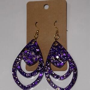 Handmade epoxy resin dangle earrings - purple and gold glitter