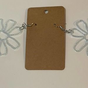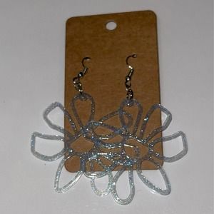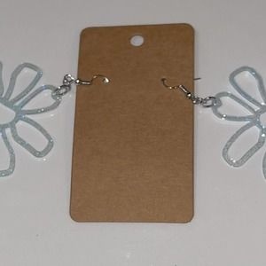 Handmade epoxy resin dangle earrings - translucent light blue glitter flowers
