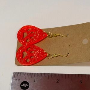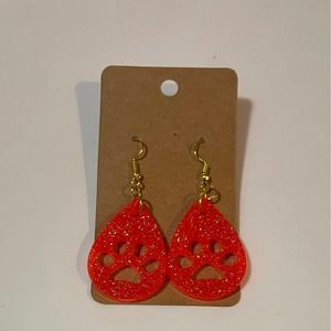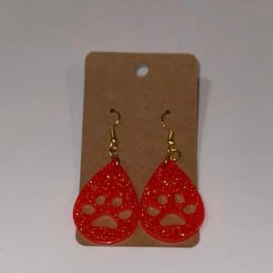 Handmade epoxy resin paw print earrings - fluorescent orange glitter