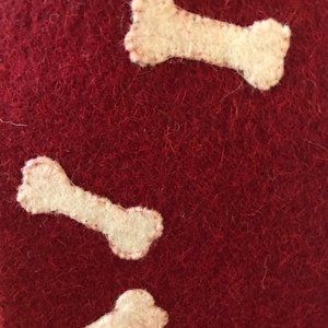 Handcrafted in India, this "dog" stocking is destined to be a holiday family heirloom. Made of real firehose material, this elf is tougher than it looks! Both new with tags.