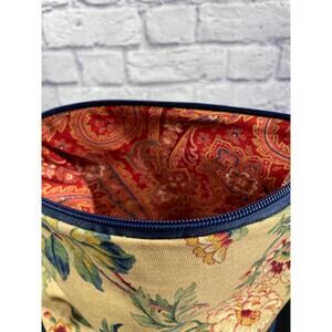 Handmade floral and denim fabric bag. The bag is one of a kind