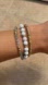Handmade three-strand breaded bracelet. It features beautiful white howlite gemstones and jade gemstones with antique gold accents. Bracelet is adjustable.
