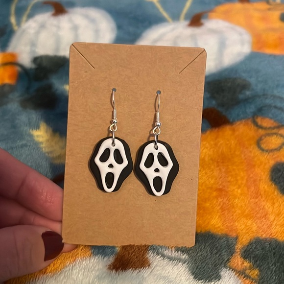 Handmade ghost face dangle earrings