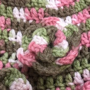 Super cute handmade hat. Ruffle ends with a decorative bow on front.