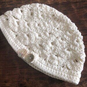 Handmade Knit Cap With Mother Of Pearl Buttons