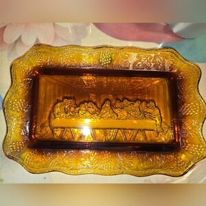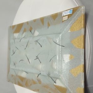 Handmade in Israel Naharlya Glass Tray Andreas Meyer Gold White Painted Art