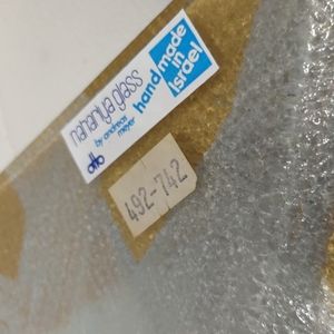 This gorgeous piece of glass art is handmade in Israel. see photos for details. Contact us with questions.