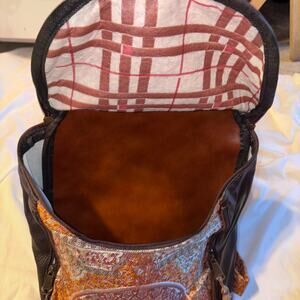 Handmade in Pakistan Boho Woven Backpack Tapestry Fabric Leather Trim 12x13.5