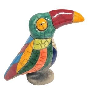Handmade in South Africa Colorful Ceramic Toucan Bird Figurine 6" T x 7" W