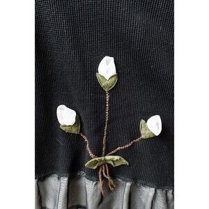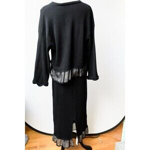 This handmade in USA two-piece set is a unique addition to your wardrobe. The oversized top adds a touch of comfort to the black skirt, making it perfect for a casual day out. The set includes a skirt and a casual shirt, both of which are designed to fit a size 2, The outfit is perfect for women who want to make a statement with their clothing. The black color adds a touch of elegance to the set, while the oversized top adds a touch of comfort. This outfit is perfect for a day out with friends or a casual date night.