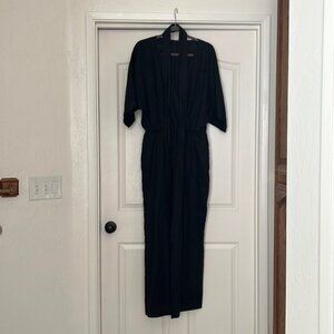 Purchased on Etsy, made in Ukraine. Fits like a M-L or size 10. High quality linen, no flaws. Straight leg, pockets, dolman sleeve, matching waist tie. It’s not linenfox brand but very similar style.