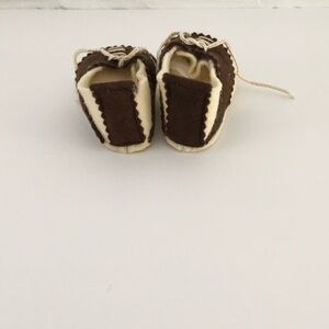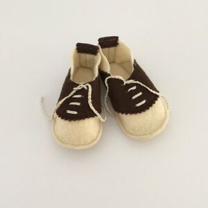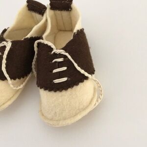 Handmade infant/baby/doll felt cream and brown classic lace-up saddle shoe