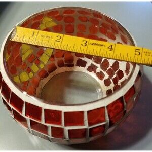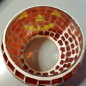This Stained Glass Jack-O-lantern Candle Holder/candy bowl, is the perfect addition to your Halloween decoration collection. Made of triangular glass material put together by hand it adds a touch of elegance and spookiness to any room.