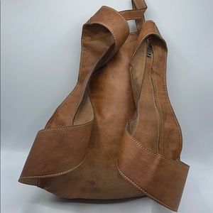 Handmade leather backpack light weight suede lining inside very flexible coat leather nice vintage tan color it’s a new design vest backpack