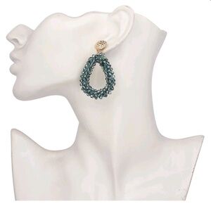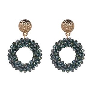 Lightweight handmade crystal beaded earrings. Beads are an iridescent light blue. Choose between the teardrop or circle shape, both with a gold stud. Make sure you check out the other colors that are available in this style.