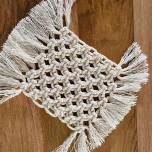 8x5 macrame coaster. Perfect for a tabletop, desk, fireplace, or counter! Adds a little boho to any room.