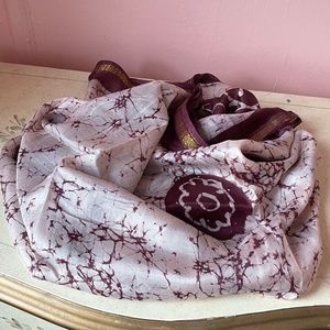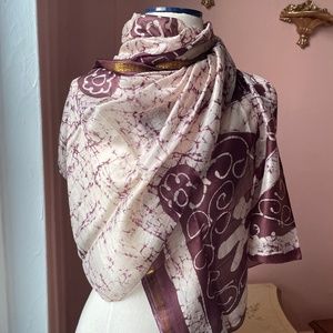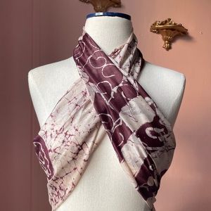 This gorgeous marble print silk scarf in burgundy/cream color is handmade of vintage silk,golden embroidery ,the fabric texture is the most delicate&soft silk ever.