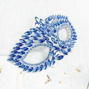 Handmade masquerade mask, Blue crystal mask, Wedding party mask, Masquerade ball