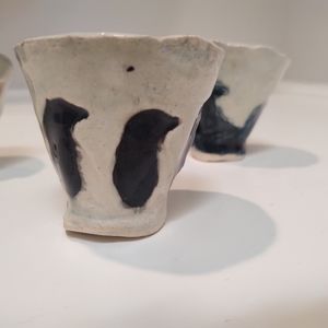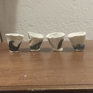 Four handmade mini pots that are about 2" tall and 2" in diameter.
