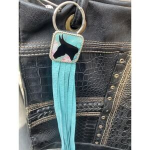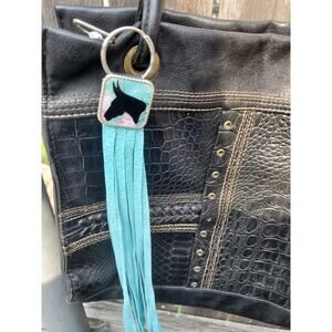 Handmade mule lover boho Leather Fringe Western bag charm, Long fringe keychain