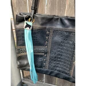 Charming concho Leather Tassel add some Flair of western inspired art on screwback conchos fixed with hardware on leather fringe tassles purse or Saddle Charm.