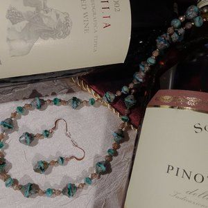 Handmade necklace/earring set with Czech aquamarine bicone beads