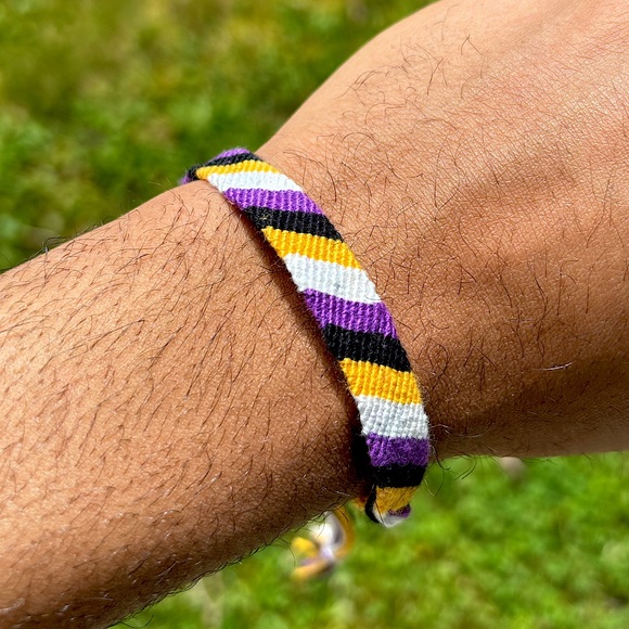 Handmade adjustable stripped non binary thread bracelet. Adjustable from 10” to 6”