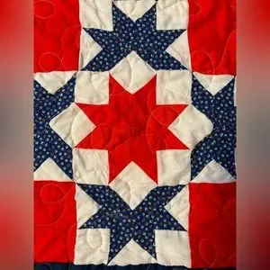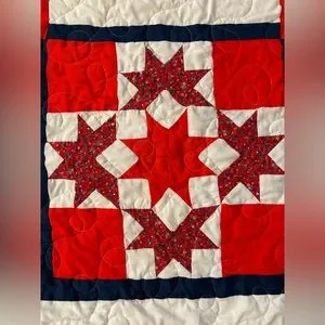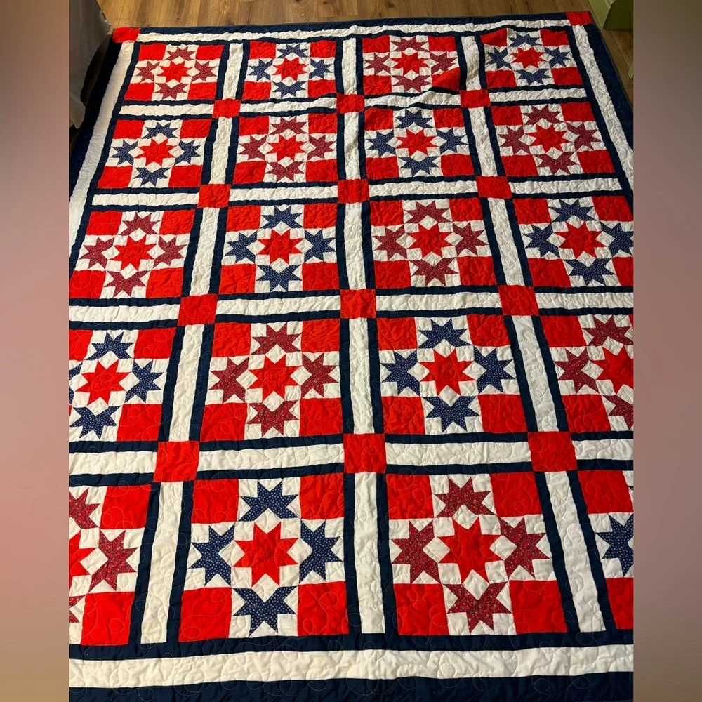 Beautiful red and blue patchwork quilt in new condition Queen size