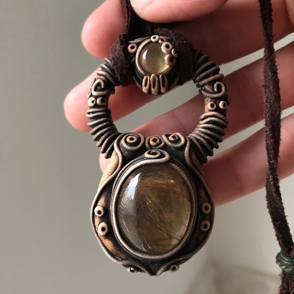 handmade unique Citrine and Rutilated Quartz cabochon pendant, purchased from Etsy years ago. Value of $127 shops name is Medeos . She made the most beautiful pendents. This one was very dear to me. Needs love, it hasn’t seen the light of say in ages. Rare one of a kind