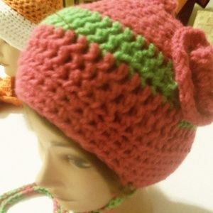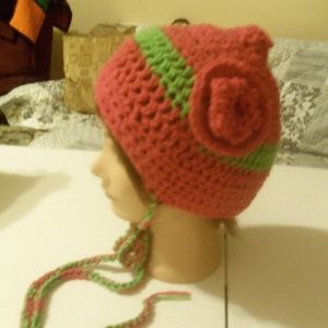 ☃️☃️☃️Hat with flower made by me. Braided tie.☃️☃️☃️