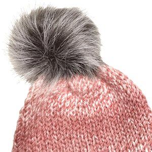 Handmade pom hat rose pink knit slouchy removable faux fur pompom adult winter