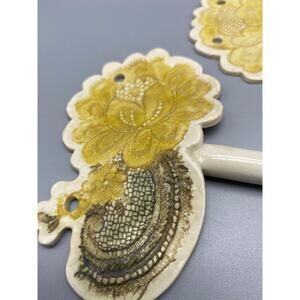 Handmade pottery signed wall hooks shabby chic boho Eclectic Pair Floral