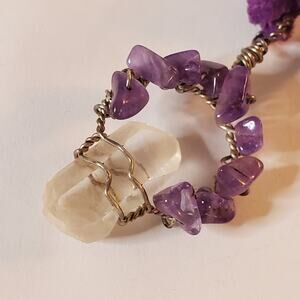 Handmade purple leather corded beaded quartz pendent necklace in Great condition
