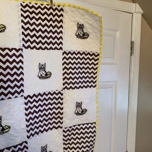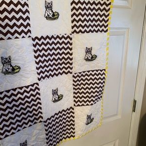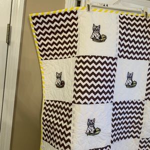 31” x 39” handmade quilt. Brown, white, and yellow color. Embroidered the kittens with machine and quilted with a quilting machine and binding was sewn by hand. New. Cotton fabric