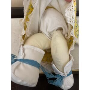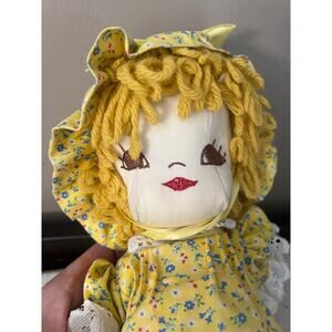 Handmade, rag doll yellow hair with yellow floral dress 12” tall. See photos for more info.