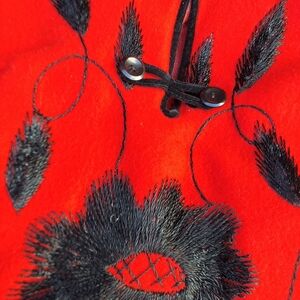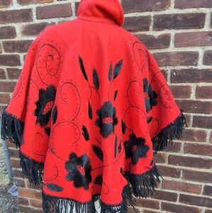Handmade red vintage felted embroidered poncho / cape ONE SiZE.. fits plus