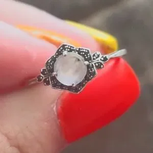 handmade ring only worn 6 months. Real black diamonds surrounding a moonstone. Real silver band as well.