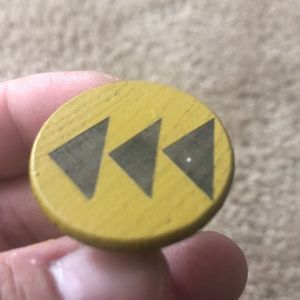 Super cute ring made from wood and silver. Front is yellow painted wood with design and ring itself is silver adjustable band. 7/8” across and wood design is 1 1/4”. Please let me know if you have any questions or would like more photos! I accept offers as well. Thanks