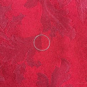 Minimalist ring. Handmade by local artisan. It’s now big for me. I had a sterling silver and a white gold plated, none of them are stamped, so I’m not sure which material is this one (I lost the other one, so I can’t compare them either). I believe the size is about 7.75.
