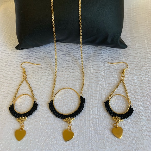 Handmade set with miyuki beads (Gold plate necklace and earrings ( available colors Black & Red)