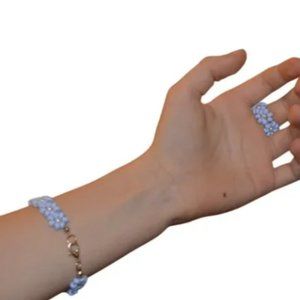 Handmade set of Ring & Bracelet Light Purple Seed Beaded Flowers