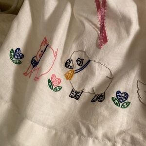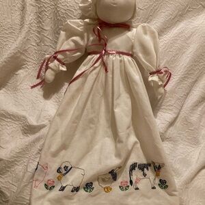 Handmade simple rabbit doll with pretty hand embroidered dress cow pig chicken