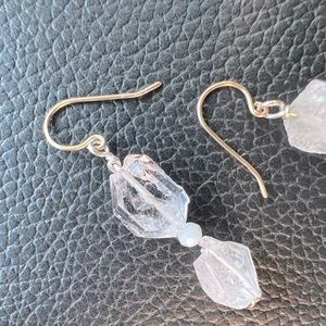 A mix of both sterling silver and 14k gold wire with unique Herkimer diamonds.